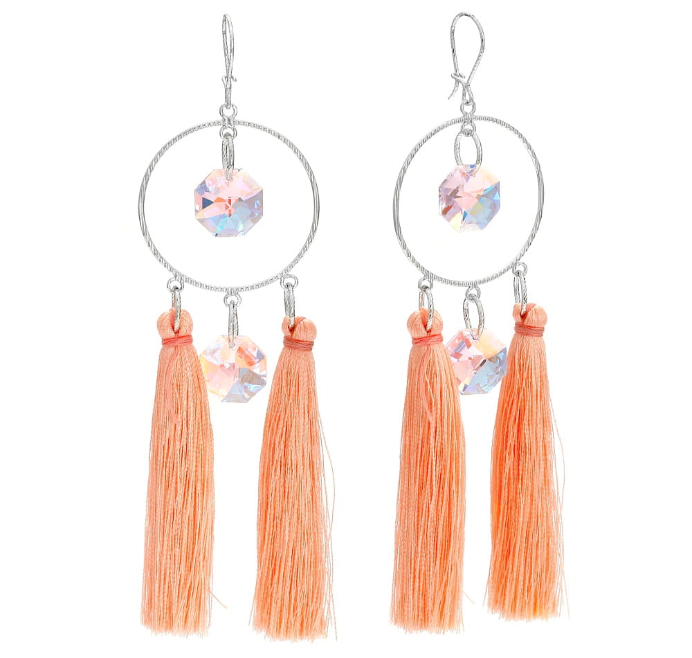 Kolczyki chwostki koła, brzoskwiniowe frędzle, kryształ Swarovski®, pozłacane srebro 925