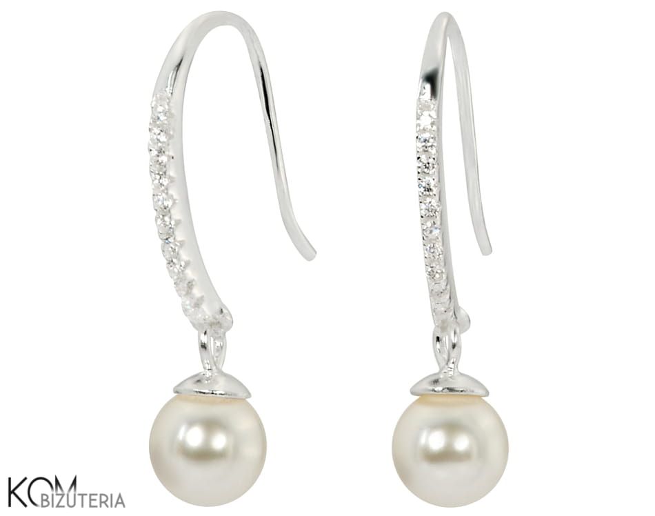 Kolczyki haczyki, białe perełki i cyrkonie, srebro 925, perełki Swarovski®, cyrkonie
