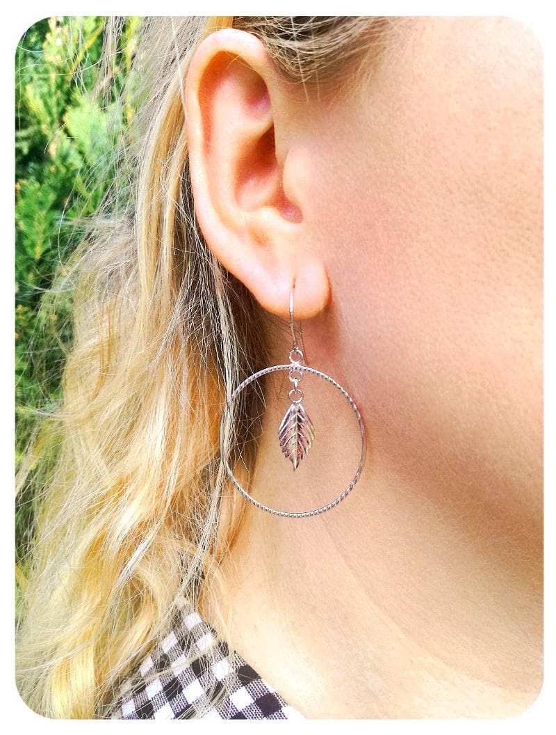 Kolczyki koła, listek, srebro 925