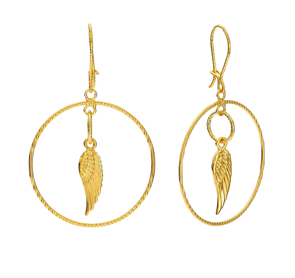 Kolczyki koła, skrzydło, pozłacane srebro 925