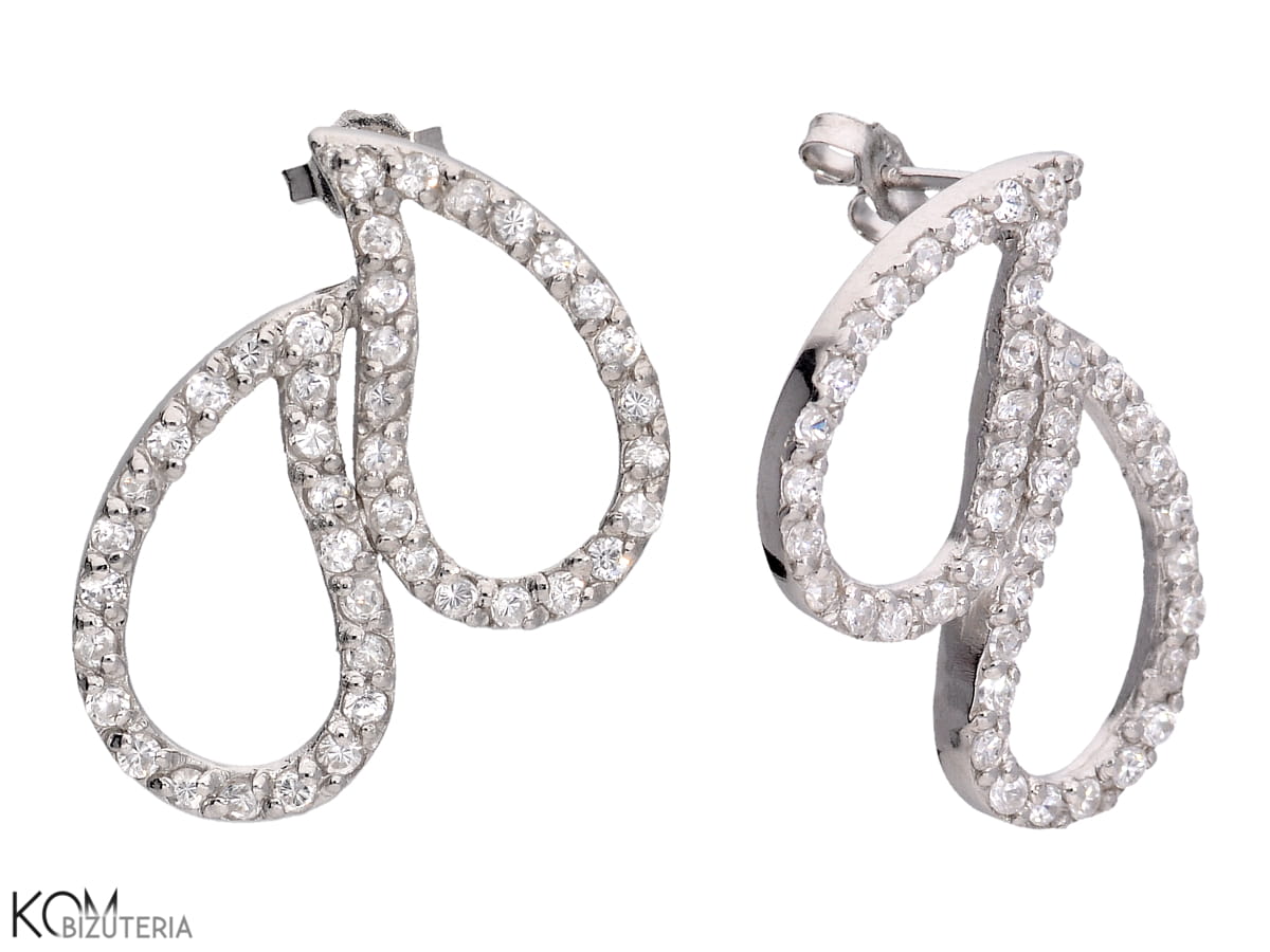 Kolczyki sztyfty dwie kropelki z cyrkoniami, srebro 925, cyrkonie