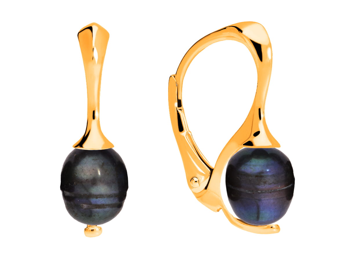 Kolczyki z naturalną czarną perłą, pozłacane srebro 925, perła słodkowodna
