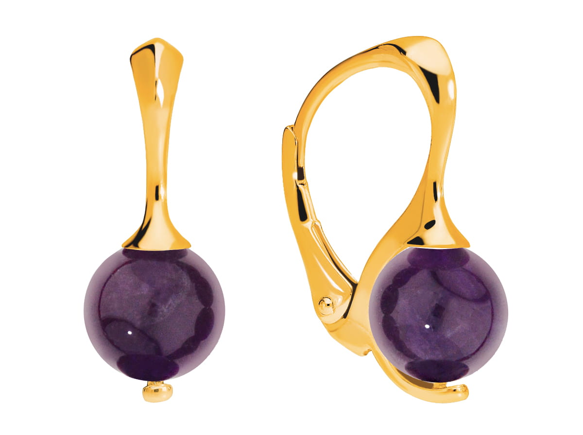 Kolczyki z naturalnym ciemno fioletowym ametystem, pozłacane srebro 925, ametyst