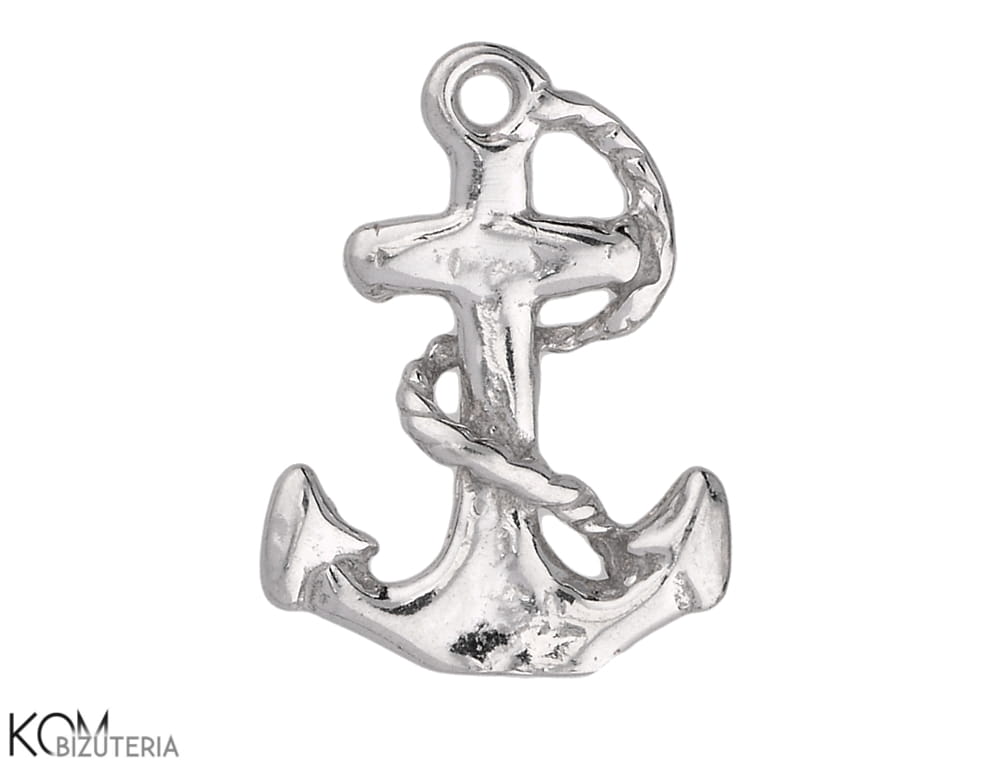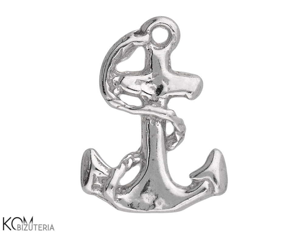 Rodowana, srebrna ozdobna zawieszka, charm kotwica 13x10mm w198