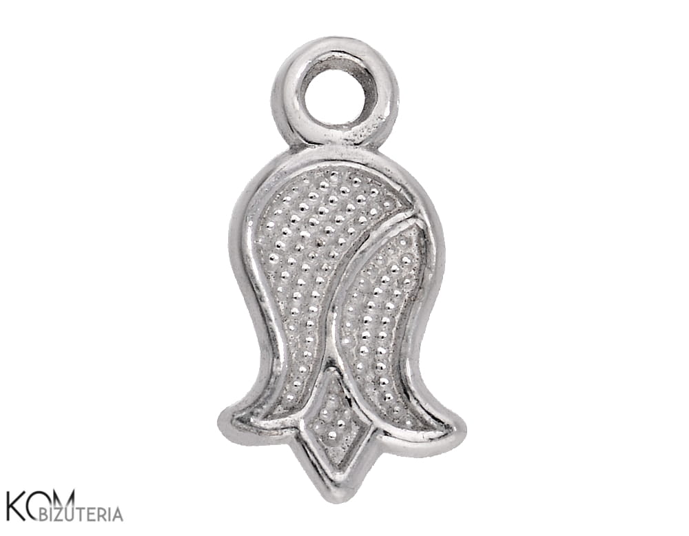 Rodowana, srebrna ozdobna zawieszka charm tulipan, kwiat 12x6 mm W185