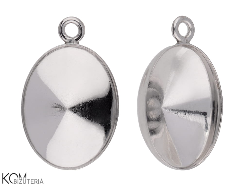 Miseczka w tej zawieszce zrobiona jest pod kryształy Swarovski® 4122 oval rivoli (kryształy owalne) 14 mm i inne podobne kamienie.