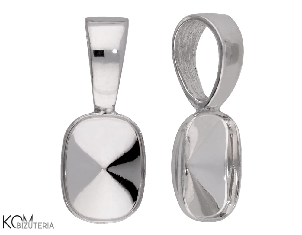 Miseczka w tej zawieszce zrobiona jest pod kryształy Swarovski® 4568 cushion (kryształy prostokątne) 8 mm i inne podobne kamienie.