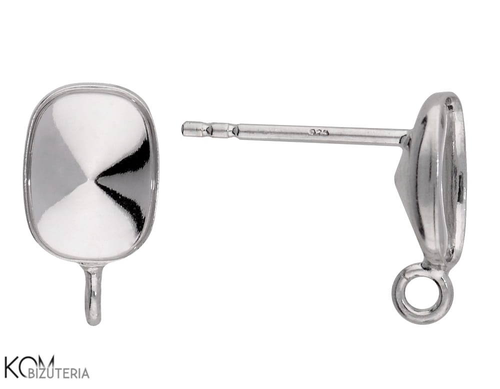 Srebrny kolczyk sztyft z wklęsłą miseczką do kryształów prostokąt 4568 8mm z haczykiem kh53