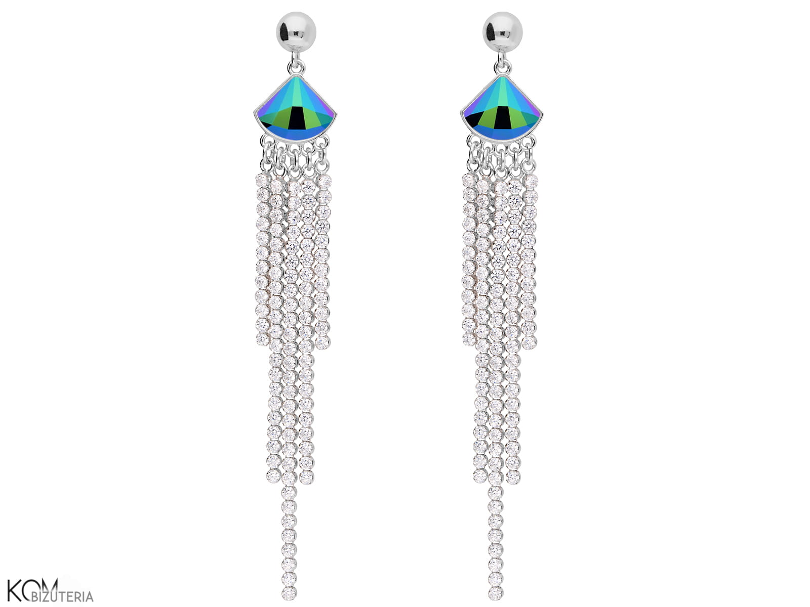 Wiszące kolczyki chandelier z cyrkoniami, kryształ Swarovski® wachlarz, srebro 925, cyrkonie