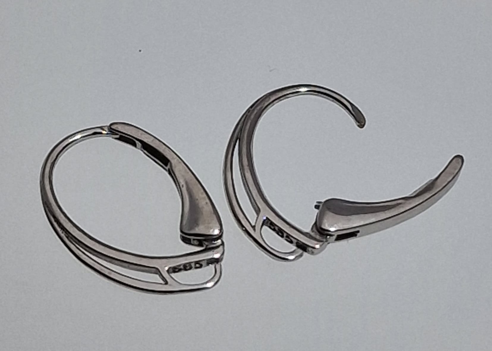 Złoty kolczyk angielski, bigiel leverback kz07,białe złoto próba 585 (para) (1)
