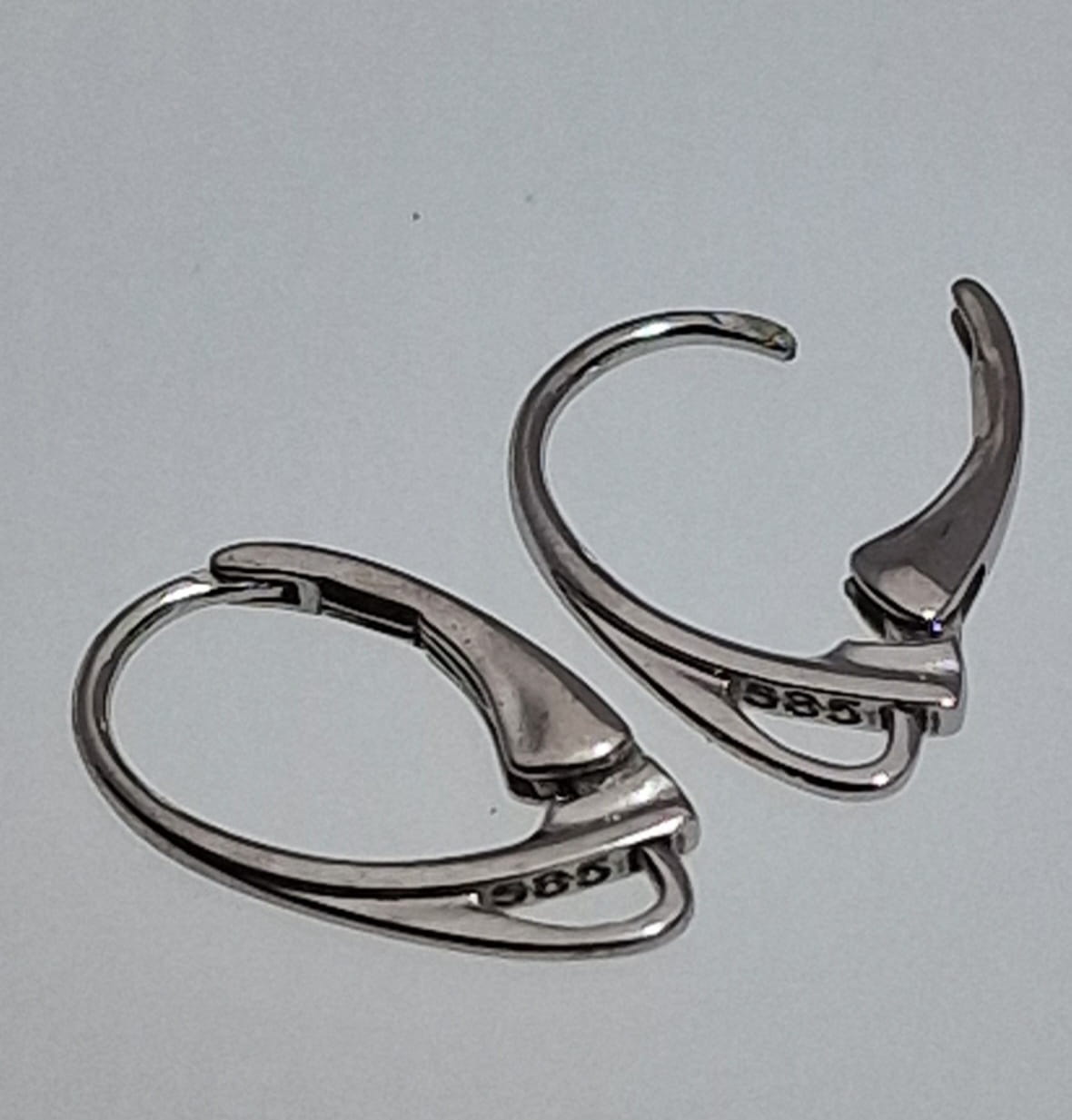 Złoty kolczyk angielski, bigiel leverback kz16,białe złoto próba 585 (para) (1)